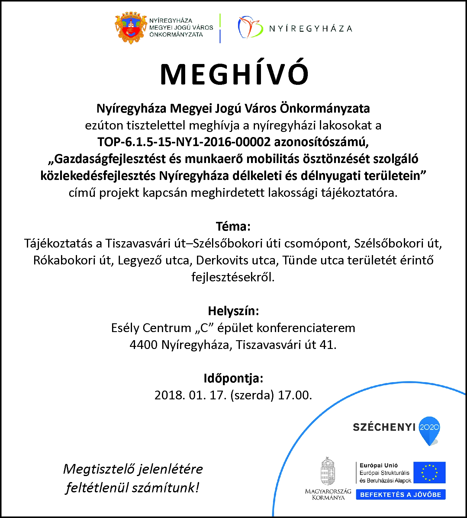 Lakossági fórum - közlekedésfejlesztés Nyíregyháza délkeleti és délnyugati területein