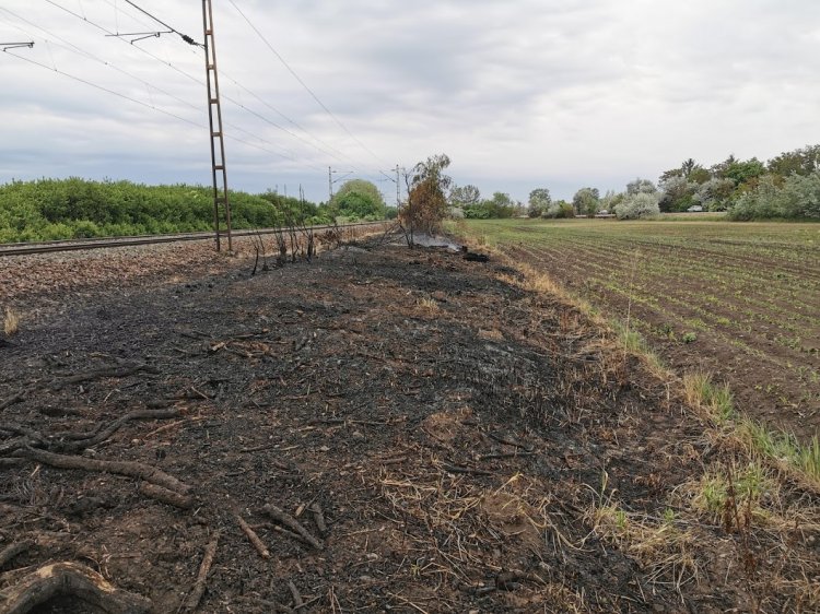 Száraz aljnövényzet égett a 4-es főút mentén, mely a vasúti és közúti forgalmat is veszélyeztette. A megyei katasztrófavédelem munkatársai gyorssugárral oltották el a lángokat.