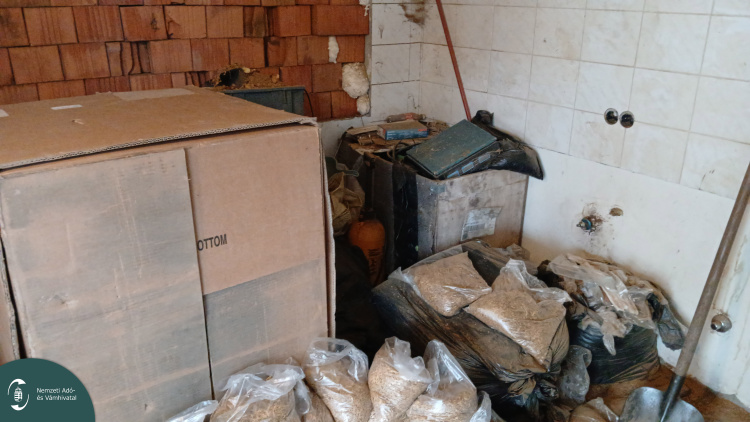 A konyhában sajátos „üzem” működött: a földre szórt dohányt kerti lapáttal porciózták kisebb zacskókba, két rozsdás dohányvágó gép társaságában, amelyeket látszólag rendszeresen használtak. A férfi elmondta, az alapanyagot Nyíregyházán vásárolta egy ismeretlen személytől, hogy a feldolgozott terméket eladja.