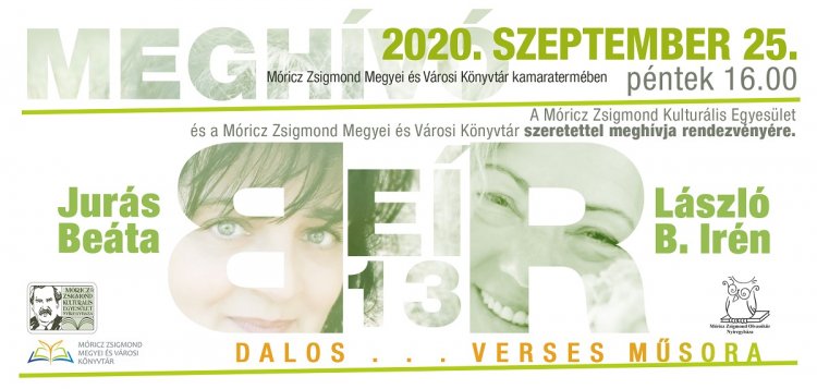 A Móricz Zsigmond Kulturális Egyesület tájékoztatja az érdeklődőket, hogy a szeptember 25-én 16 órára meghirdetett Jurás Bea és László B. Irén dalos verses műsora - biztonsági okokból - elmarad.