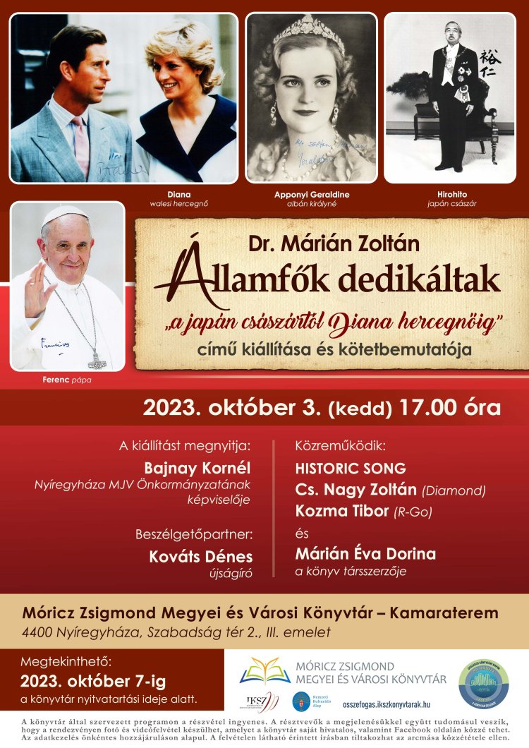 Országos Könyvtári Napok keretében bemutatják Márián Zoltán: Államfők dedikáltak című kötetét.