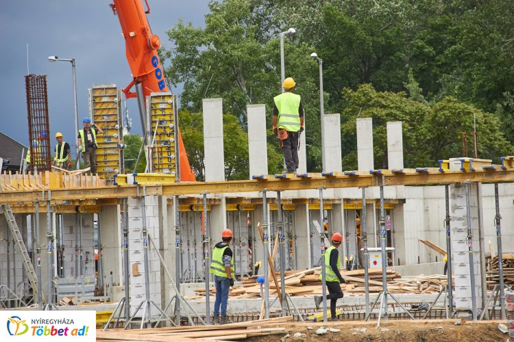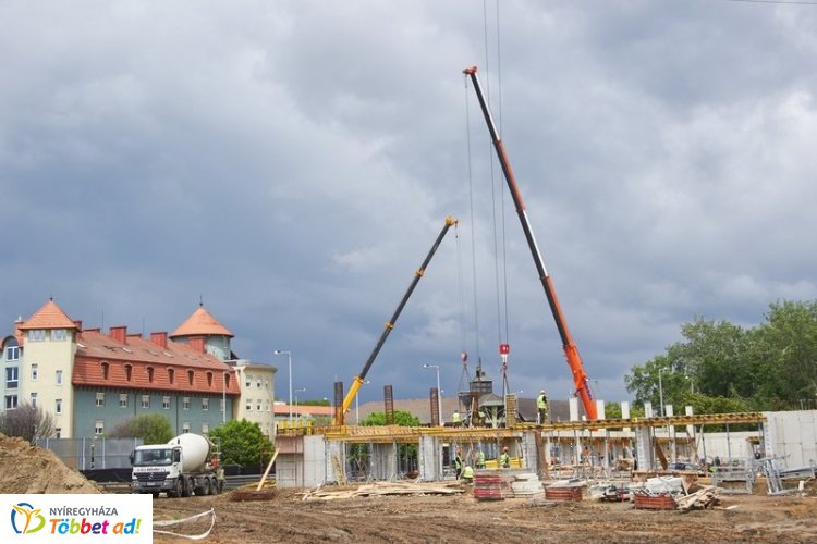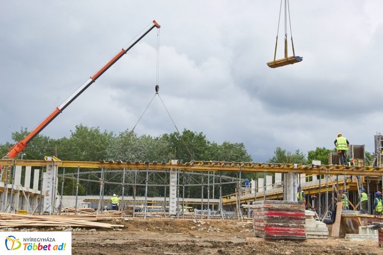 Nyíregyháza új sportlétesítménye őszre készülhet el a Continental Aréna szomszédságában. Tavaly októberben tették le az alapkövét, novemberben pedig már kirajzolódtak a medenceterek vonalai, pár nappal ezelőtt, május elején többek között a kiszolgáló blokkok födémbetonozása zajlott, a daruk pedig azóta is folyamatosan dolgoznak a munkaterületen.