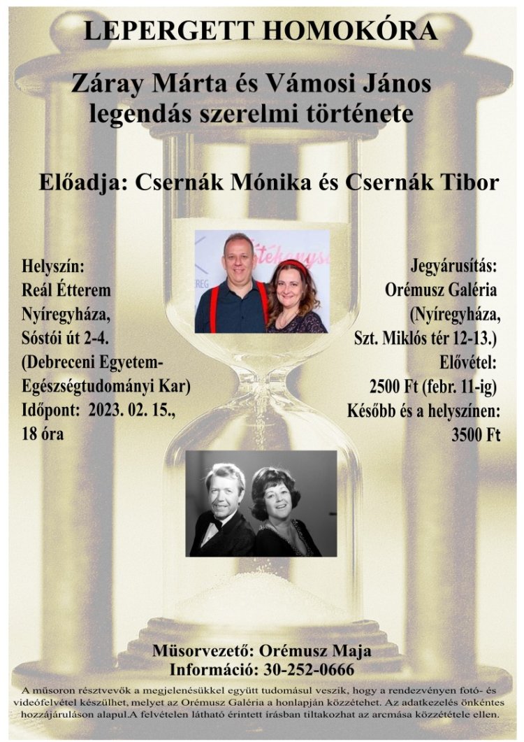 Előadja Csernák Mónika és Csernák Tibor február 15-én, a Reál Étteremben.