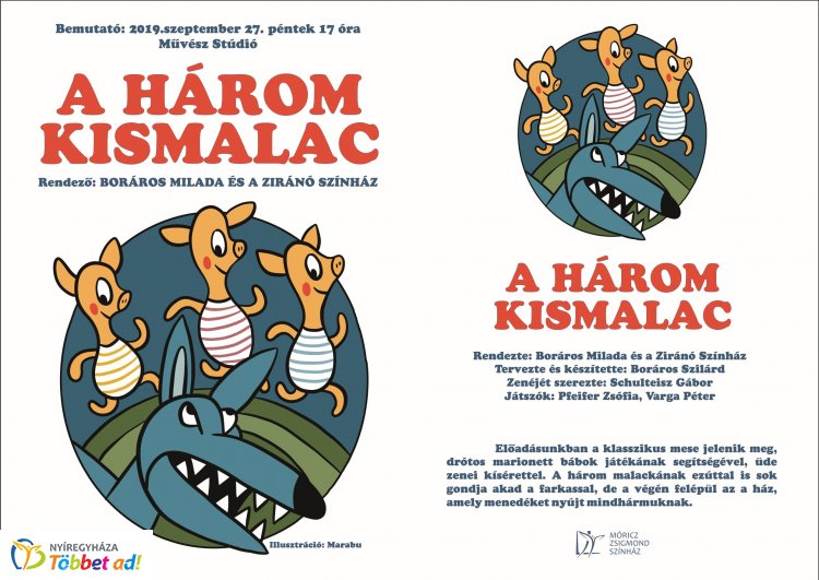 A Móricz Zsigmond Színház Művész Stúdiójában ma, 17 órától a Három kismalac című mese várja a gyerekeket!