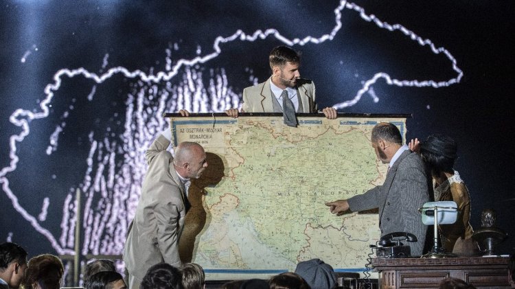 Jelenet a Trianon című rockopera próbáján a Hősök terén 2018. június 21-én. Fotó: MTI/ Szigetváry Zsolt)