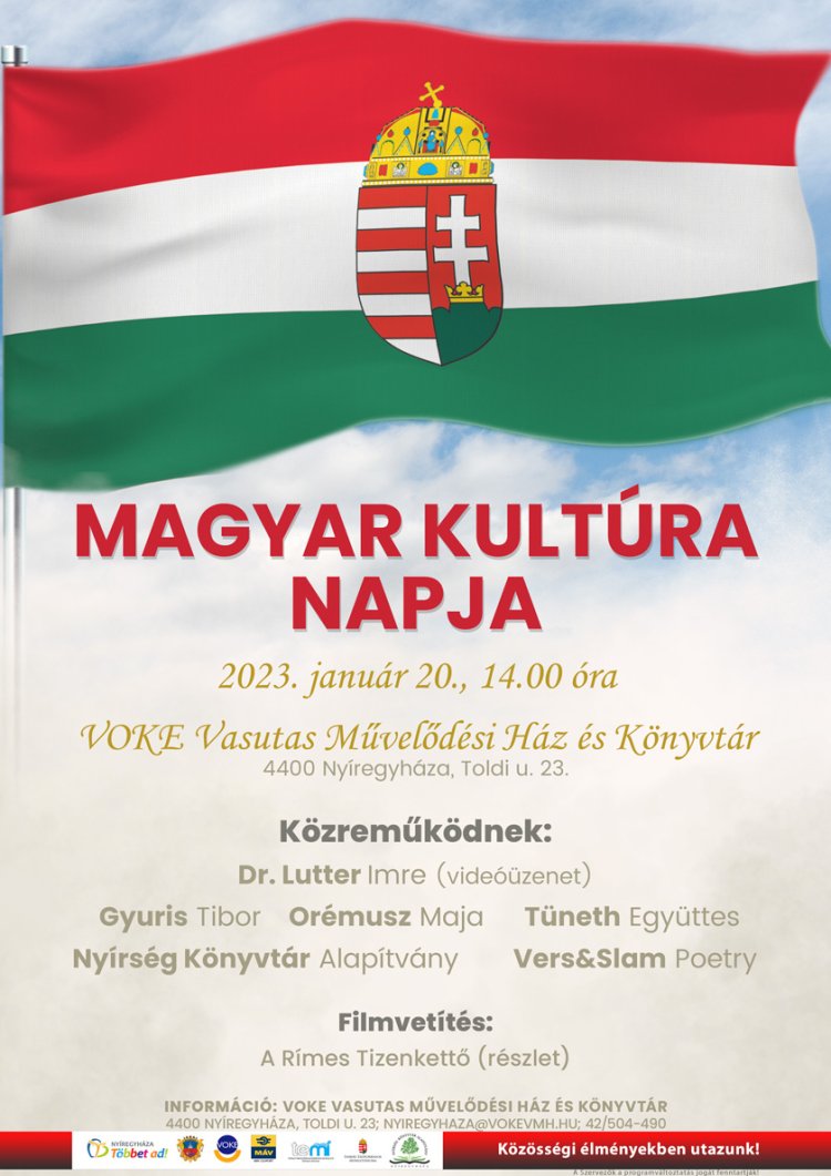 2023. január 20-án 14 órától a Magyar Kultúra Napja alkalmából, a VOKE Vasutas Művelődési Ház, a Nyírség Könyvtár Alapítvánnyal közösen szervez rendezvényt.
