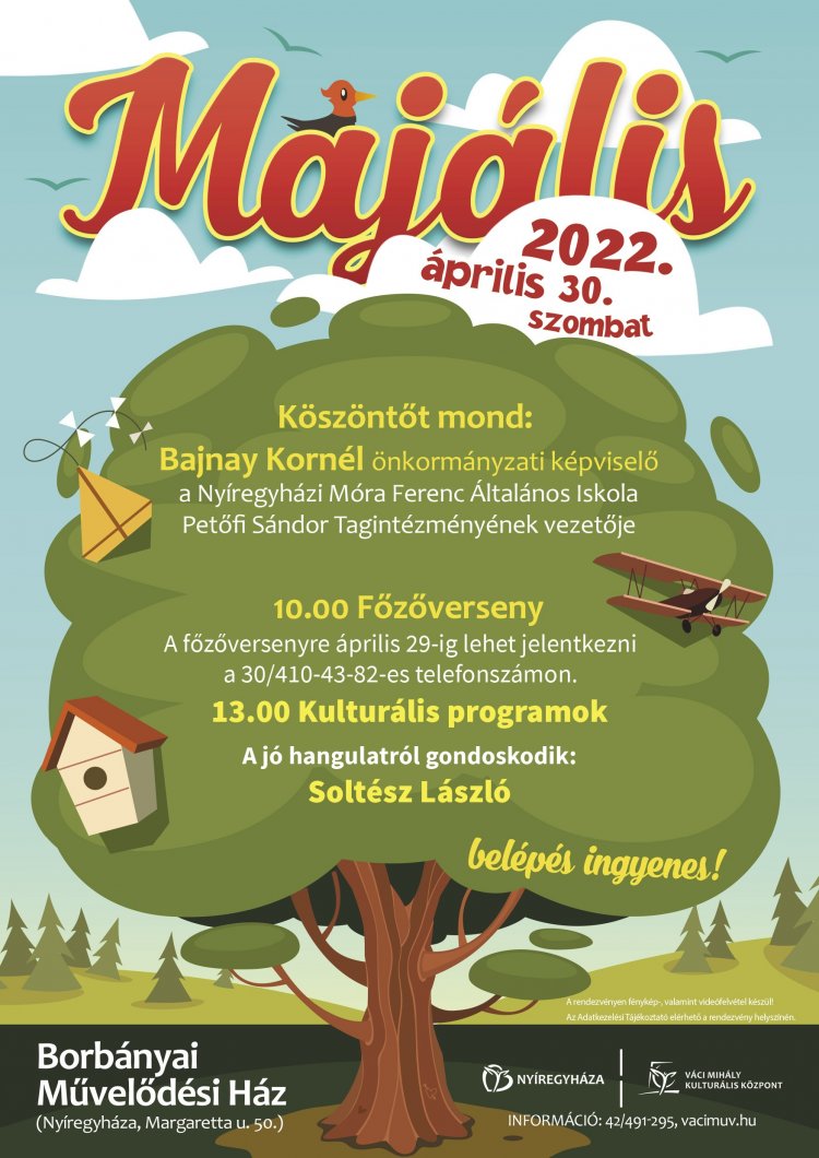 Főzőversennyel, kulturális programokkal várják Borbánya lakóit április 30-án, a helyi művelődési házban A jó hangulatról Soltész László gondoskodik. A rendezvényre a belépés ingyenes.