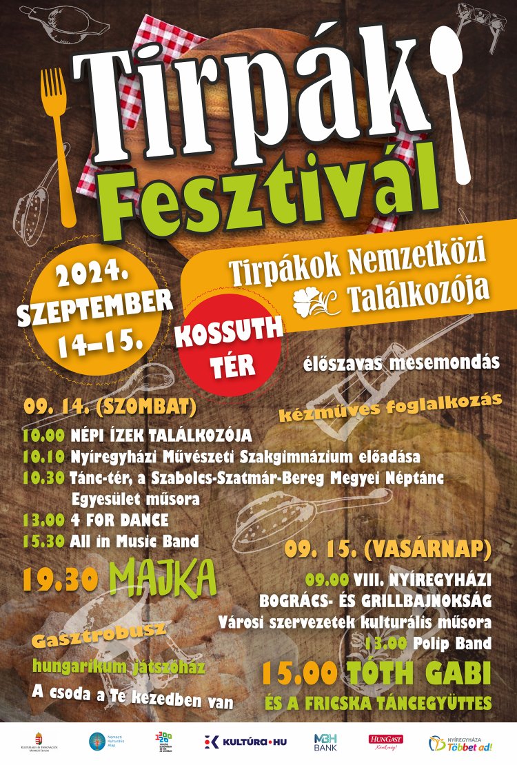 Alig ért véget a Cantemus Fesztivál, és még csak ma kezdődik a Vidor Fesztivál, ám Nyíregyháza polgármestere a legnagyobb közösségi portálon ismertette a Tirpák Fesztivál részleteit. Szeptember 14-én és 15-én rengeteg finomsággal, neves előadókkal és fergeteges hangulattal várják a helybélieket és turistákat!