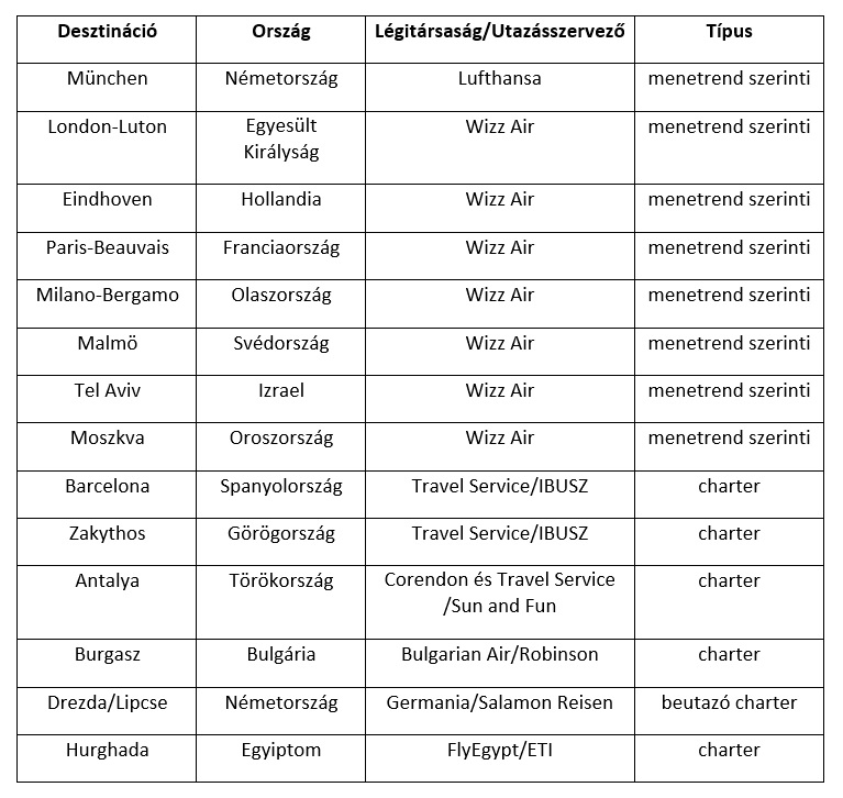 Új úti célok 2019. márciustól a Debrecen Airportról
