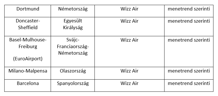 2018. május 14-én a Wizz Air, Közép-Kelet Európa legnagyobb légitársaságának döntését örömmel üdvözöltük, hiszen idén már 2 bázis gépet fog üzemeltetni a Debrecen Airportról és további 8 új úti céllal bővíti a debreceni kínálatot már 2018. decembertől. Barcelona, Dortmund, Doncaster, Bázel, Milánó-Malpensa és 2019. márciustól, Málta, Ciprus és Palma de Mallorca is elérhető lesz.