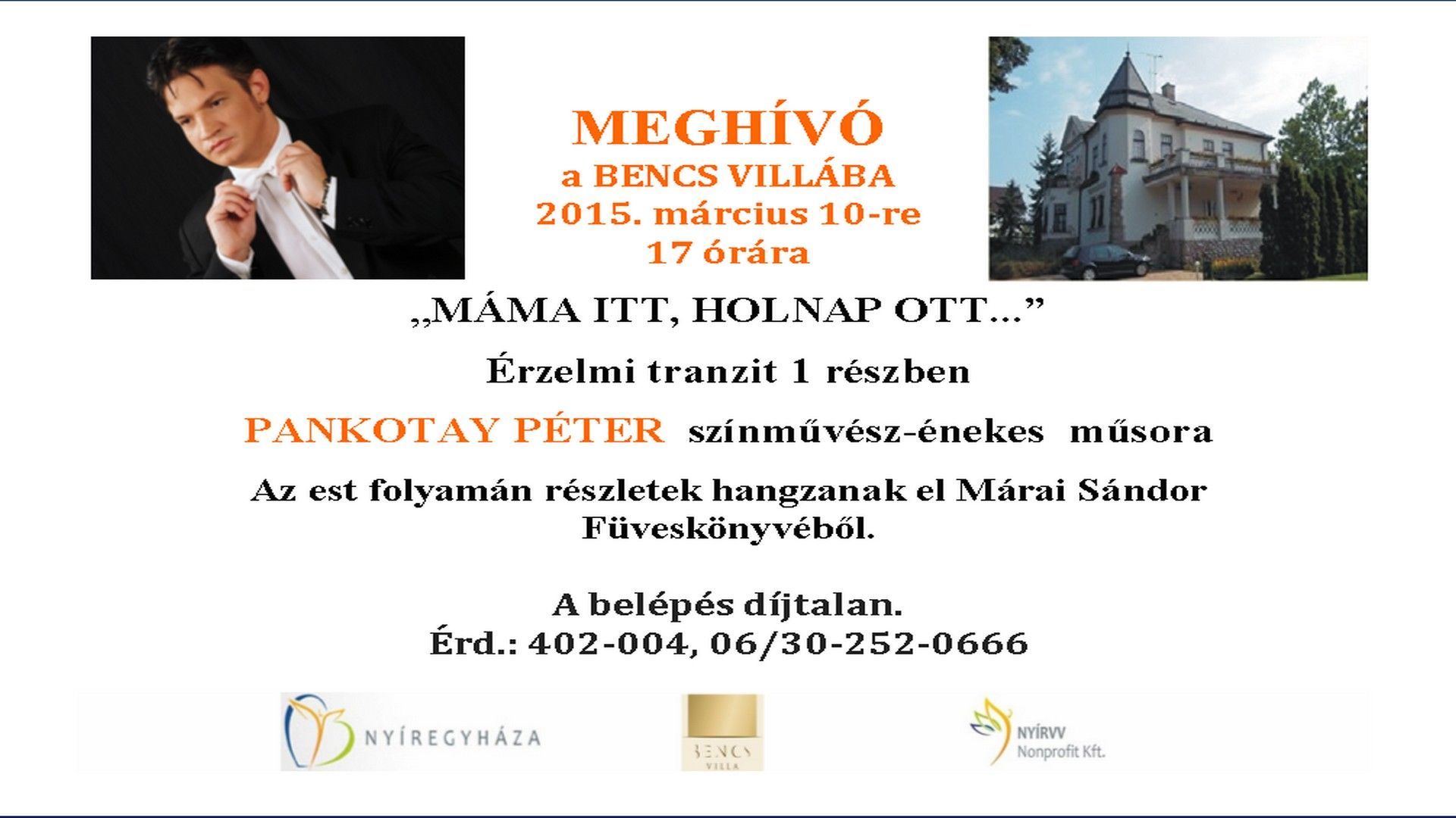 Pankotay Péter estje március 10-én a Bencs Villában.