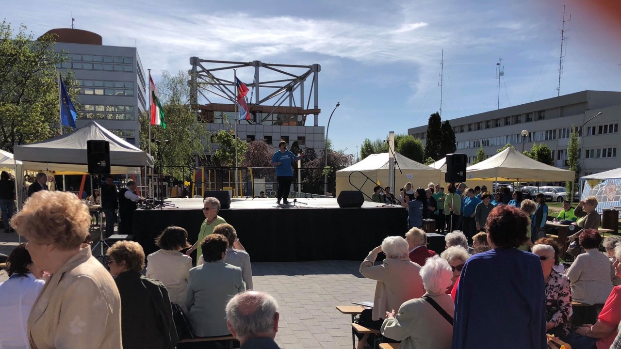 Az Omnis Alapítványtól Bartha Éva énekes táncos bemutatója indította a programokat a Váci Mihály Kulturális Központ előtti színpadon, ahol a gyerekek már arcfestést is kérhetnek, a tigris-minta, Superman és Minnie egér a legnépszerűbbek. A Mediball bemutatók is elkezdődtek, az érdeklődők nem csak megismerkedhetnek a sporttal, ki is próbálhatják.