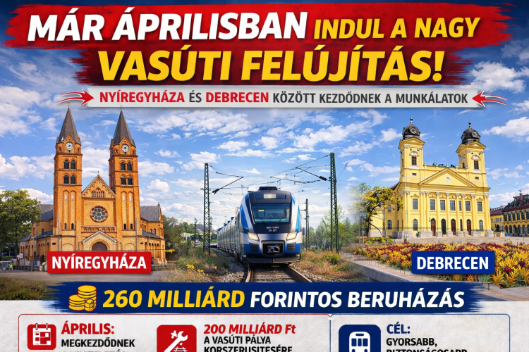 Újabb lendületet kap a vasúti közlekedés fejlesztése Kelet-Magyarországon: már áprilisban megkezdődnek a Debrecen és Nyíregyháza közötti 100-as fővonal felújításának kivitelezési munkálatai. A mintegy 260 milliárd forintos beruházás a térség egyik legfontosabb vasúti kapcsolatát korszerűsíti.