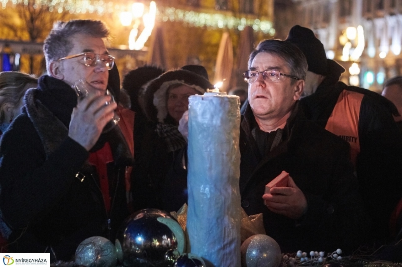 Vasárnap délután a csípős, de száraz időben újra sokan látogattak el a megyeszékhely adventi forgatagába. Az ünnepvárás jegyében az elmúlt héten az első, a hitet jelképező gyertyát gyújtották meg az adventi koszorún, most pedig a másodikat lobbantotta lángra Jászai Menyhért alpolgármester.