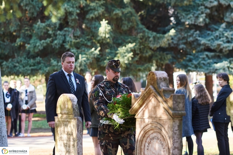 Az Északi temetőben tartották az első városi megemlékezést szerda reggel. A Nyíregyházi Arany János Gimnázium és Általános Iskola diákjai szavaltak és énekeltek az 1848-as sírkertnél.