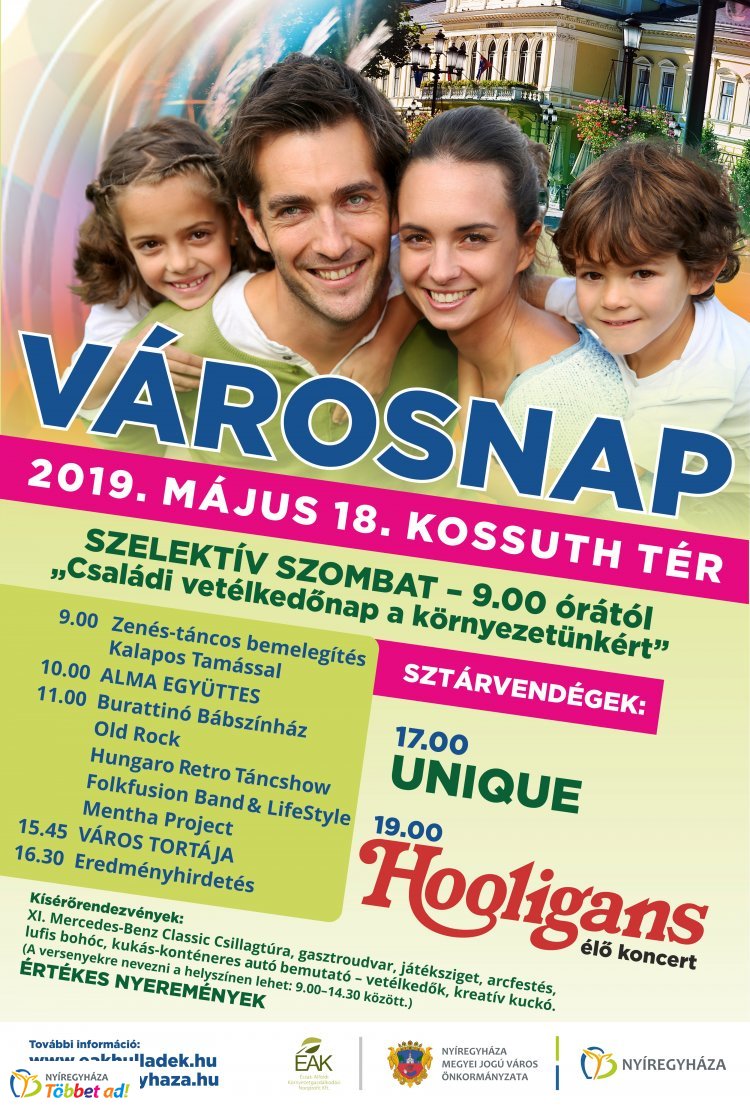 Szombaton 9 órától folyamatos programokkal várják az érdeklődőket a Kossuth téren a 2019-es Városnapon és Szelektív Szombaton.