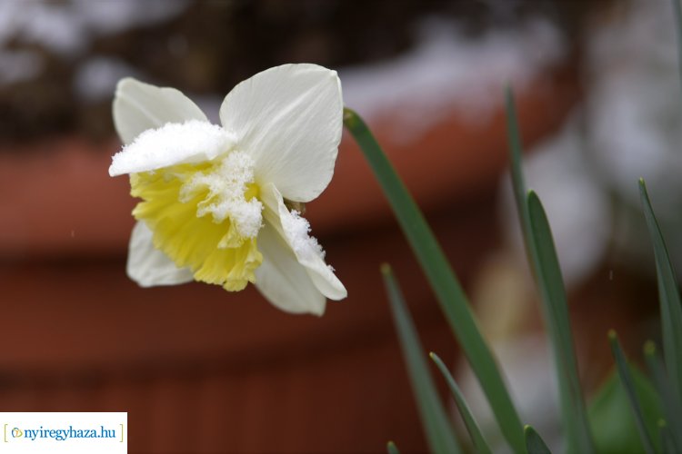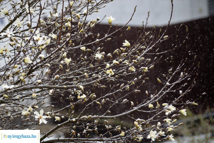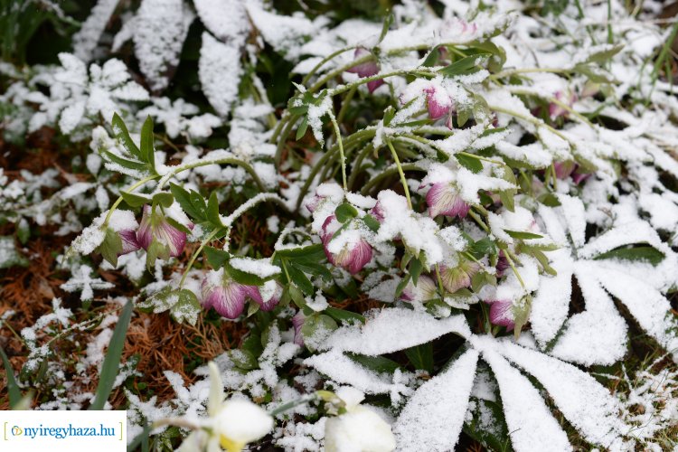 Márciusi havas pillanatok – Így borítják be a hópelyhek a nyíló virágokat Nyíregyházán