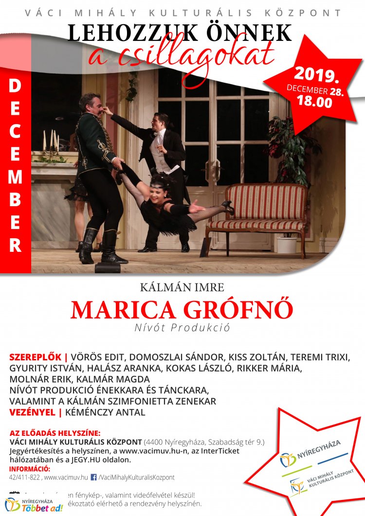 A népszerű operett, a Marica grófnő a Nívót Produkció előadásában ígér kellemes kikapcsolódást a nyíregyházi közönségnek, december 28-án a Váci Mihály Kulturális Központban.