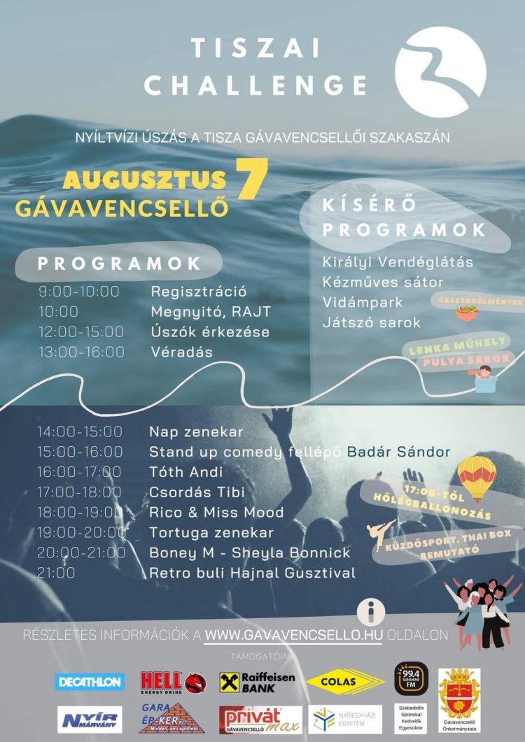 Augusztus 7-én, szombaton tartják a II. Tiszai Challenge rendezvényt, amely egy 10 kilométeres úszóverseny a Tisza gávavencsellői szakaszánál. A szervezők számára fontos, hogy a verseny egy jó hangulatú élményúszás legyen, a kilátogatók számára pedig egész napos fesztiválos programmal készülnek – foglalta össze Berecz János, Gávavencsellő polgármestere.