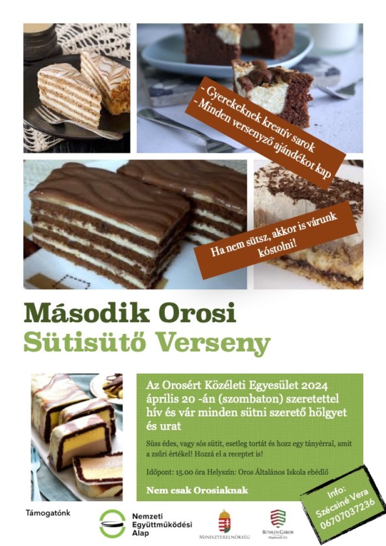 Az Orosért Közéleti Egyesület április 20-án sütisütő versenyt rendez.