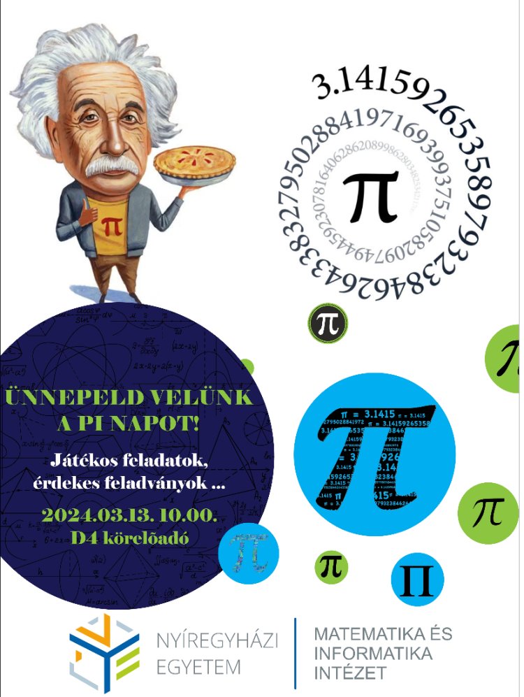 2024. március 13-án 10.00 órától π-nap-i matematikaversenyt szerveznek középiskolás diákok számára az egyetem D4. körelőadójában.