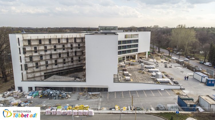A felületes szemlélő nagyjából ugyanazt látja, mint hónapokkal ezelőtt. Kecses sziluett, néhol már „színre fújt” falak, több helyen üvegezett erkélyek, az Aquarius Élményfürdő felé kanyargó hídátjáró. Ám aki a Modern Városok Program keretében épülő szállodába is bekukkanthat, jelentős sürgés-forgást érzékelhet. (Megjelent a Nyíregyházi Napló március 29-i számában.)