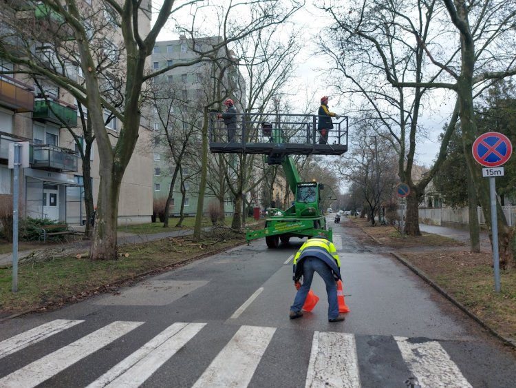 Folytatódik a fák gallyazása az Ószőlő utcán.