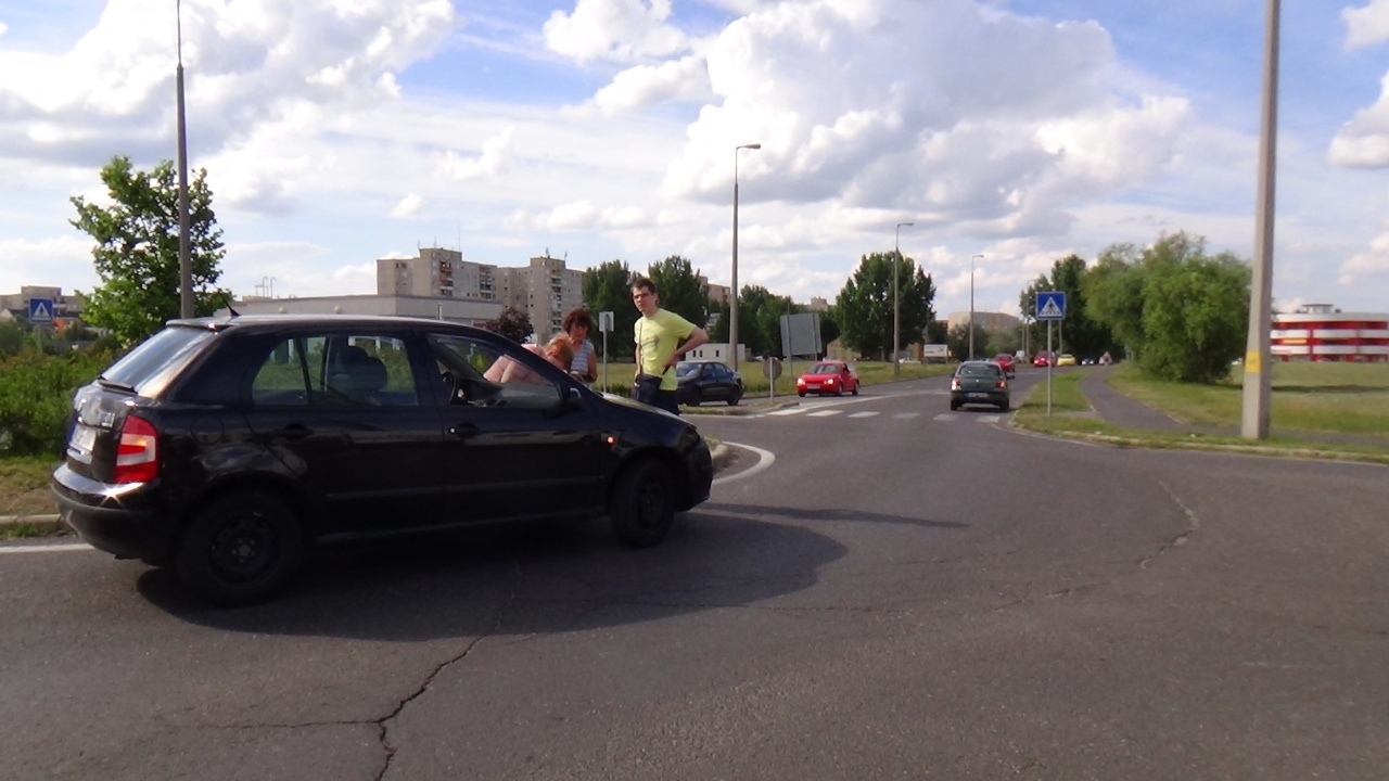 A Törzs utcai körforgalomba megállás nélkül hajtott be egy személygépkocsi és összeütközött egy szabályosan érkező autóval.