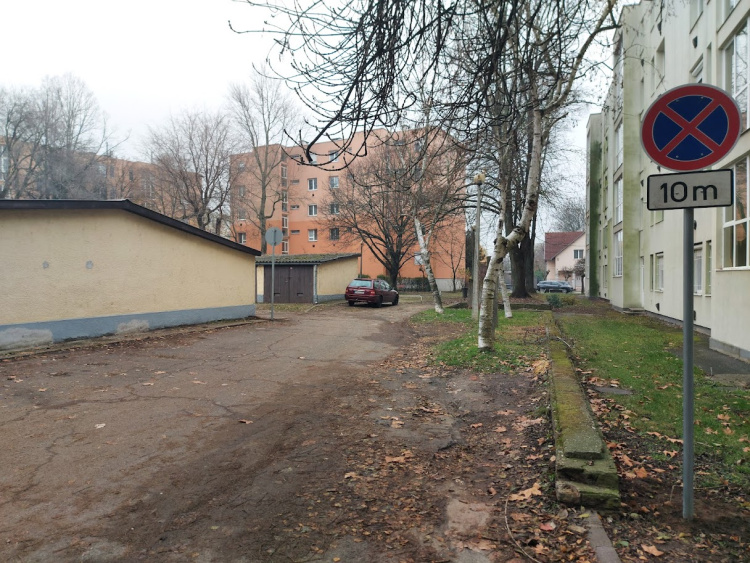 Megállni tilos táblát helyeztek ki a Jósa András utca egyik belső parkolójában, a 16. szám alatt.