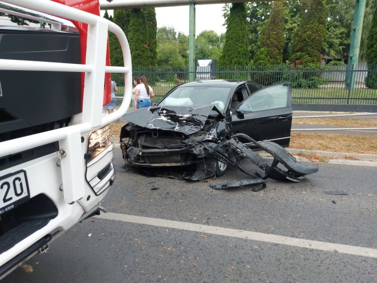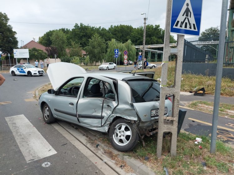 Két személyautó karambolozott csütörtök este a Derkovits és Dugonics utca kereszteződésében.