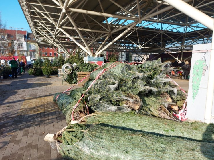 Megkezdődött a fenyőfavásár a Búza téri piacon.