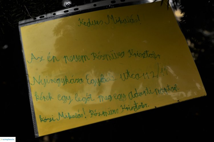 A kicsik többsége már megírta a levelét, sok Nyíregyháza Karácsonyfáját díszíti, így üzenve a Mikulásnak… Fotósunk ezeket örökítette meg Advent első vasárnapján. Megható olvasni az üzeneteket, hisszen felnőttkorban is jó hinni a Mikulásban, és együtt örülni a gyerekekkel, mert ez az alkalom ugyanúgy, mint a karácsony, a gondoskodásról és a szeretetről szól.