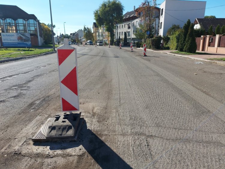 Megkezdődött a közműfedelek szintbehelyezése a Hunyadi utcán, minden akadályt táblák jeleznek az autósok számára.