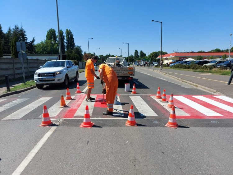 Megkezdődött az okoszebrák újrafestése, ennek első helyszíne a Korányi Frigyes utcai átkelő volt