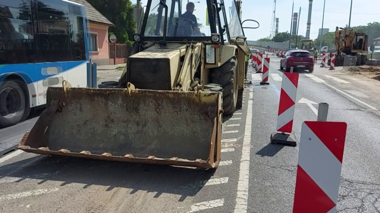A Tiszavasvári úton a Derkovits utcai csomópontban megkezdték a járdasziget elbontását.