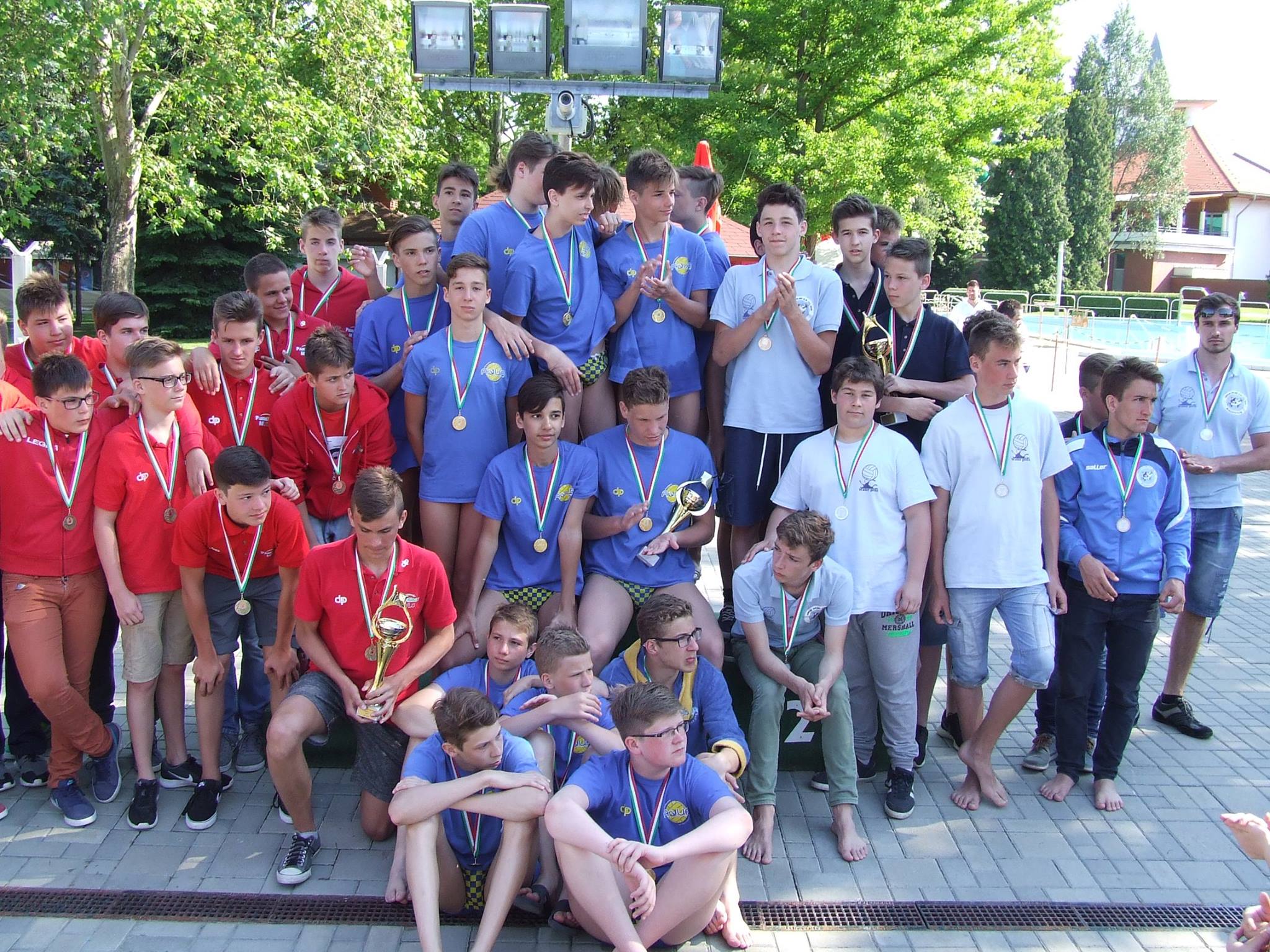 Az ünneplés pillanatai, Kántor Gábor edző a vízben. Az AQUA SE vízilabdacsapata azok után, hogy a Gyermekbajnokságban harmadik lett, az Észak-Keleti Ligakupában veretlenül győzött, feltéve ezzel a koronát egész éves teljesítményükre. Bár a kisebb korcsoportokban még van néhány mérkőzés, és rangos tornára is utazik majd az AQUA, az egyik legfontosabb feladat a tehetségek megtartása. Ebben sokat segíthet, ha Nyíregyházán megépül a tervezett uszoda.