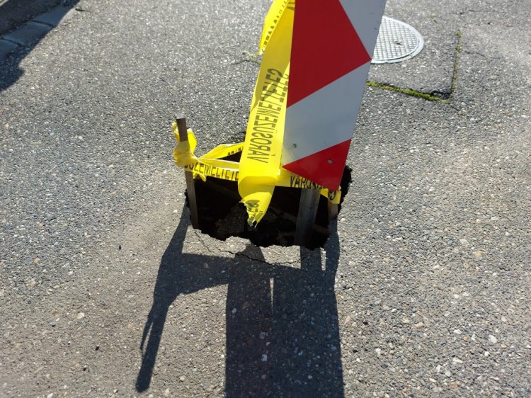 A Kodály Zoltán utcában megsüllyedt az aszfalt, a helyreállítás idejére a zsákutca forgalmát mindkét irányból lezárták.