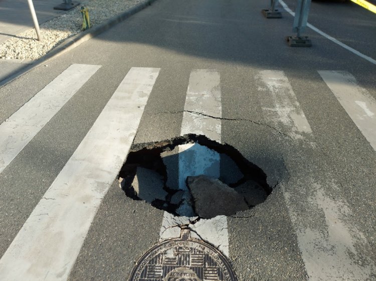 Megsüllyedt az út egy közműfedél mellett a belvárosban, a Bercsényi és a Bethlen Gábor utcánál.