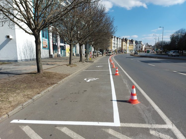 Ezentúl már csak a forgalmi sávval párhuzamosan lehet megállni, burkolati jelek jelzik a kilenc parkolót, plusz a két mozgáskorlátozott helyet.