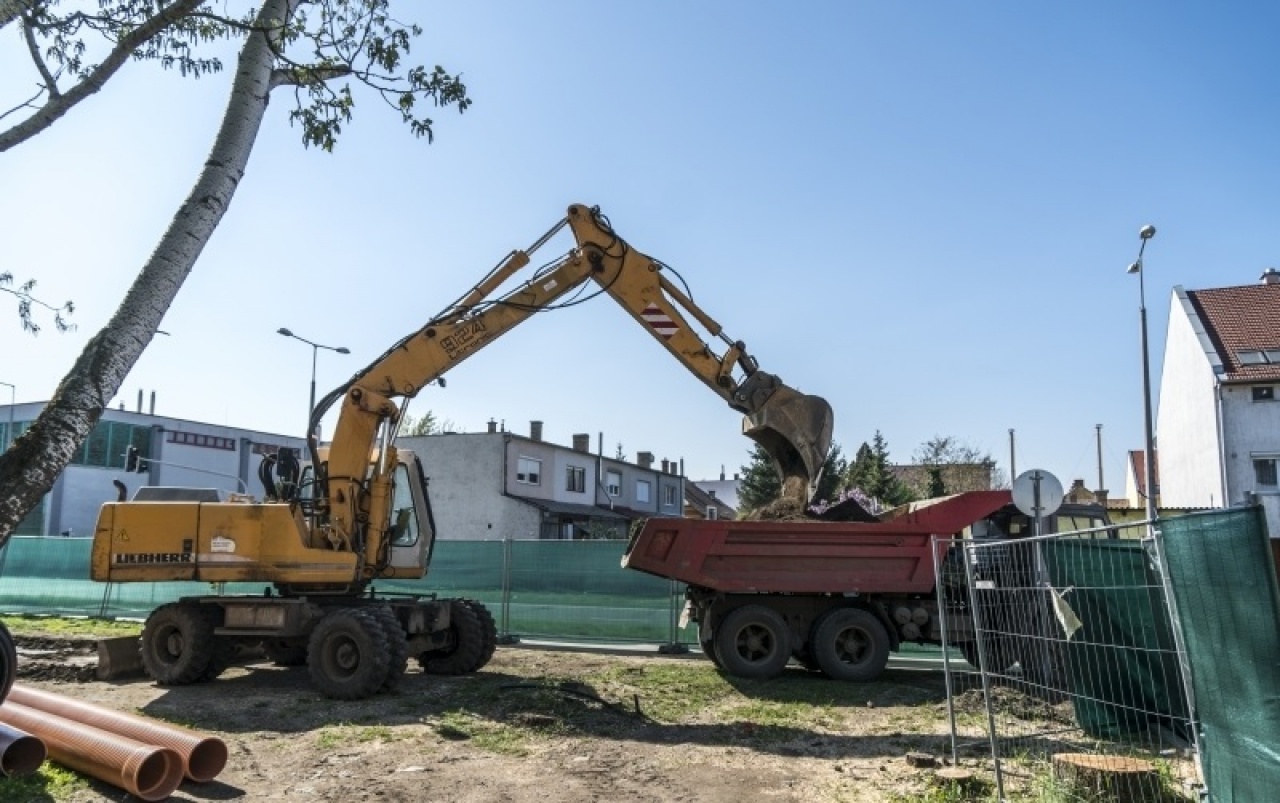 A munkálatok jelenleg a közúti forgalom akadályozása nélkül a Szegfű utca területén és a Hunyadi - Szegfű utca sarkánál lévő kis erdőben zajlanak a zöld terület felbontásával.