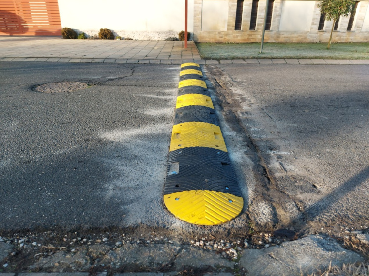 A régi elhasználódott, ezért volt szükség a cserére. A fekvőrendőr mellett KRESZ-táblákkal jelzik az autósoknak, csökkentsék a sebességüket.