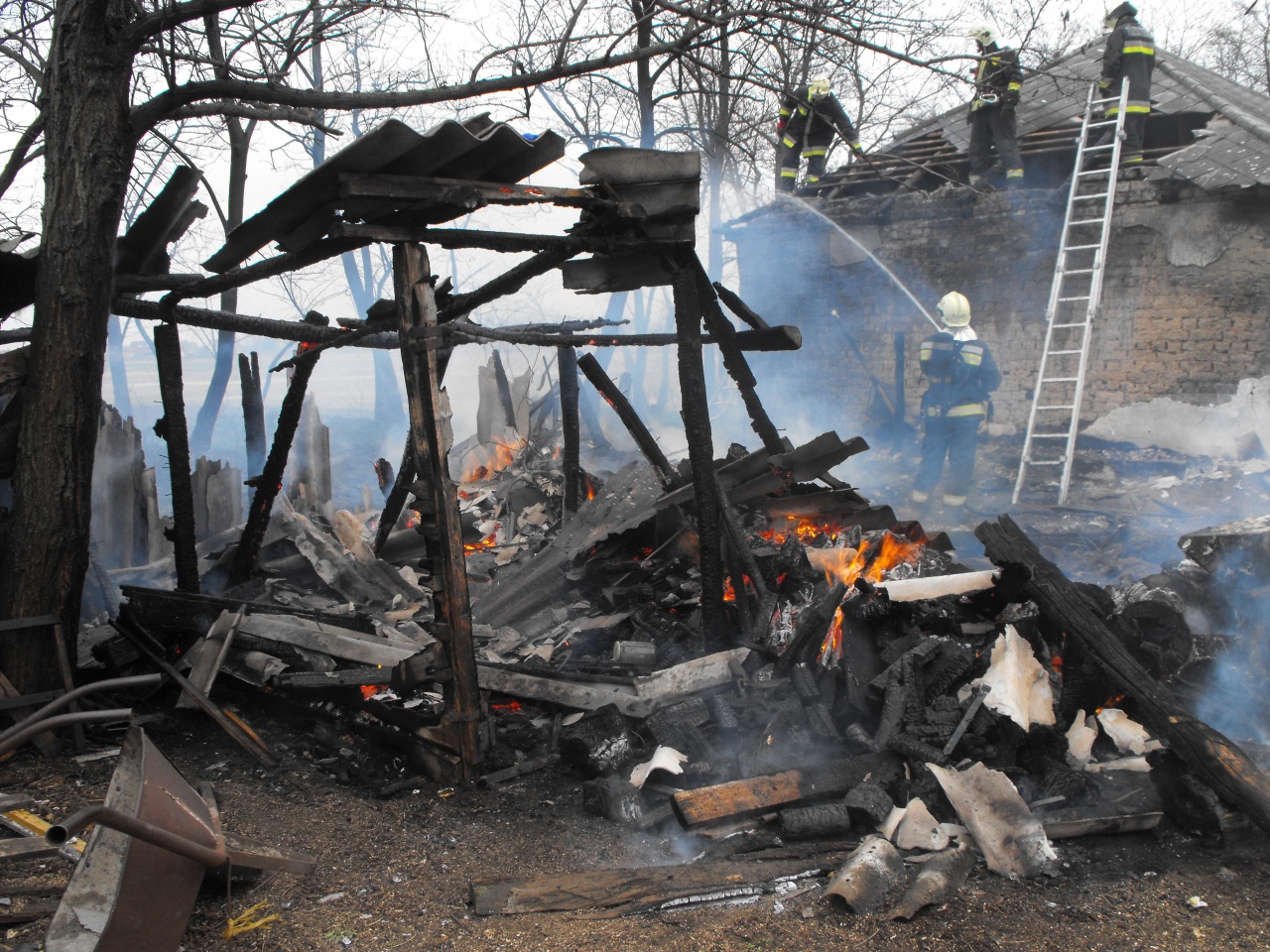 A tűz átterjedt a lakóház tetőszerkezetére is. A nyíregyházi hivatásos tűzoltók több vízsugárral fékezték meg a lángokat, majd visszabontották a tetőszerkezetet és kéziszerszámok segítségével távolították el az izzó, parázsló részeket. A faszerkezetű melléképületben gépeket és bútorokat tároltak. A lakóházból egy darab PB-gázpalackot kihoztak a tűzoltók. Személyi sérülés nem történt, a ház lakható maradt.