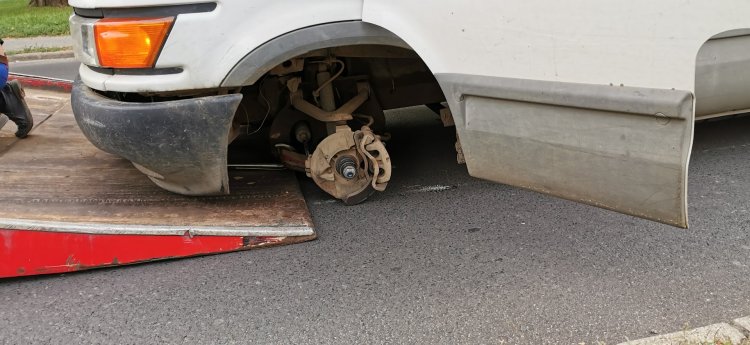 Menet közben esett ki egy kisteherautó bal első kereke a László utcán szerda este