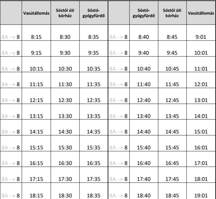 A pünkösdi hosszú hétvégén (2023. május 27-én, 28-án és 29-én) napközben valamennyi 8A autóbusz a Sóstói úti kórház helyett hosszabb útvonalon, 8-as jelzéssel Sóstógyógyfürdőig közlekedik majd.