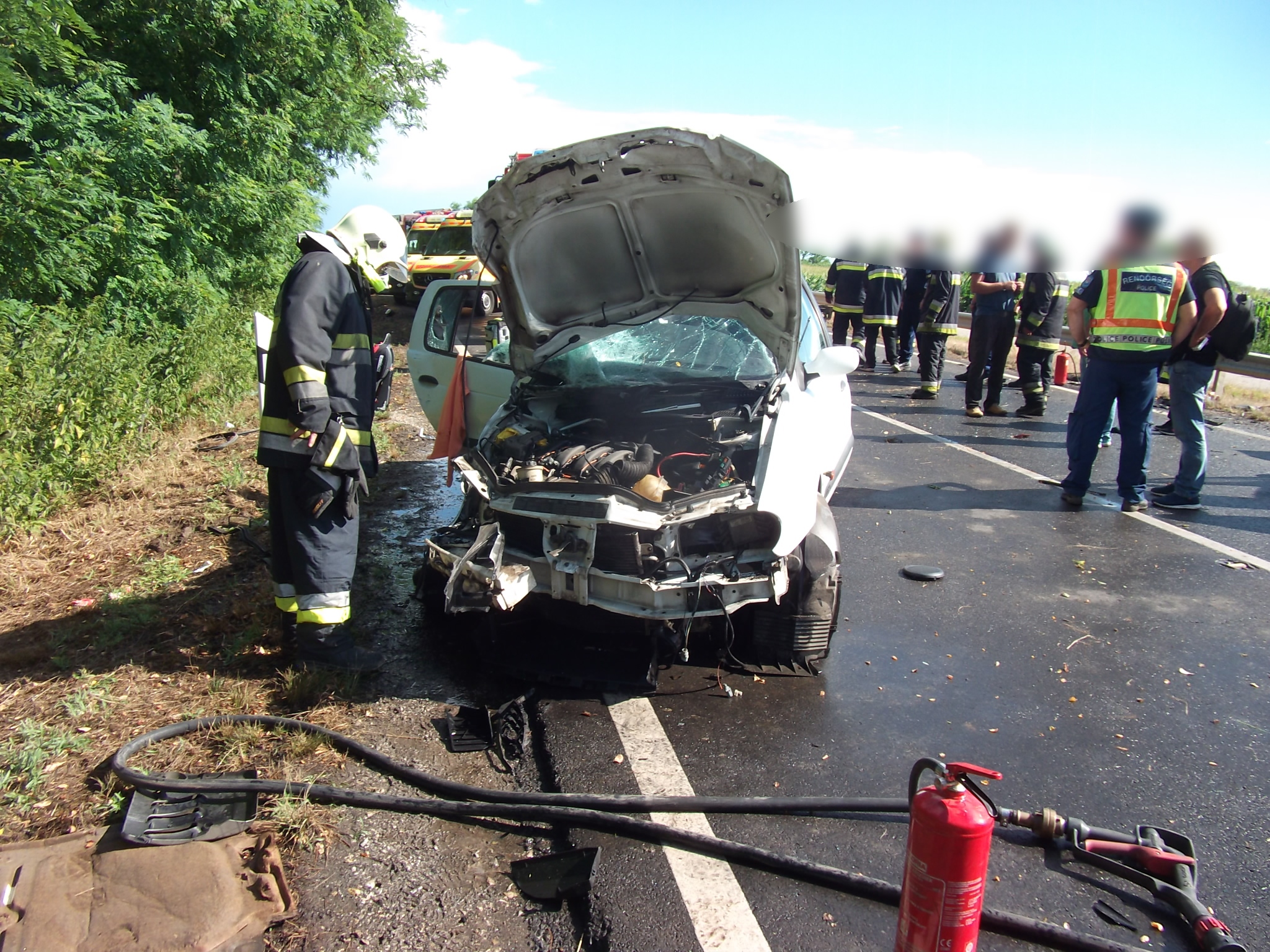 Egy rakomány nélküli zárt kisteherautó és egy személygépkocsi ütközött össze szombat délután a 38-as számú főúton, a 17-es és 18-as kilométerek között, Tiszanagyfalu közelében.
