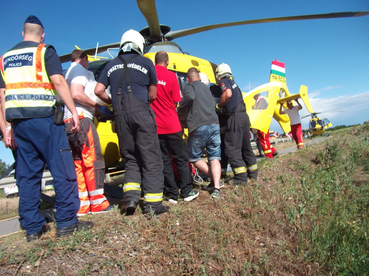 Mentőhelikopter érkezett a Nyíregyháza közelében történt súlyos baleset sérültjeiért