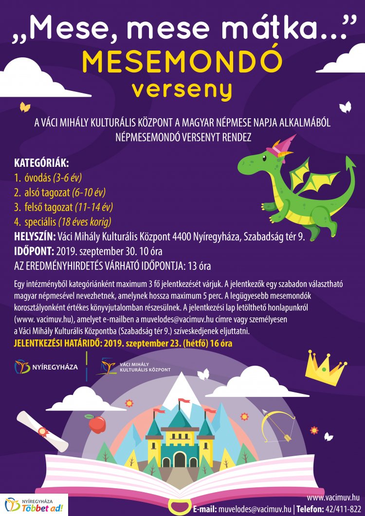 A Magyar Népmese Napja alkalmából mesemondó versenyt rendez a Váci Mihály Kulturális Központ, szeptember 30-án. Jelentkezni lehet négy kategóriában, szeptember 23-ig.