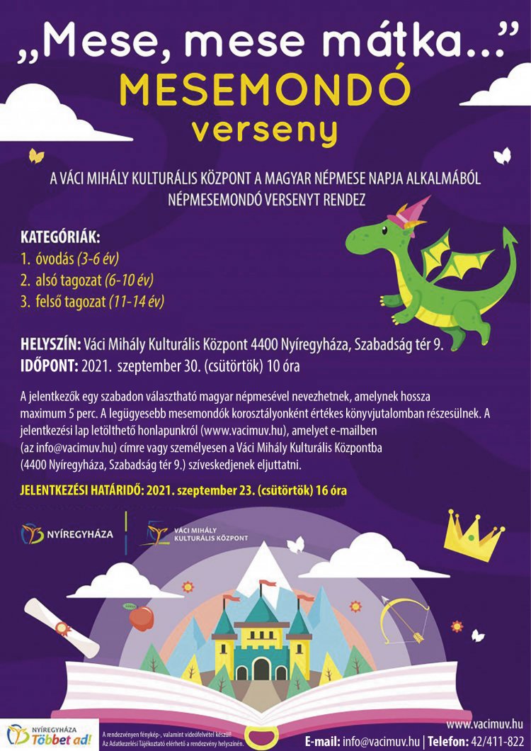 A Magyar Népmese Napja alkalmából népmesemondó versenyt rendez a Váci Mihály Kulturális Központ három kategóriában, szeptember 30-án. Jelentkezési határidő: szeptember 23.