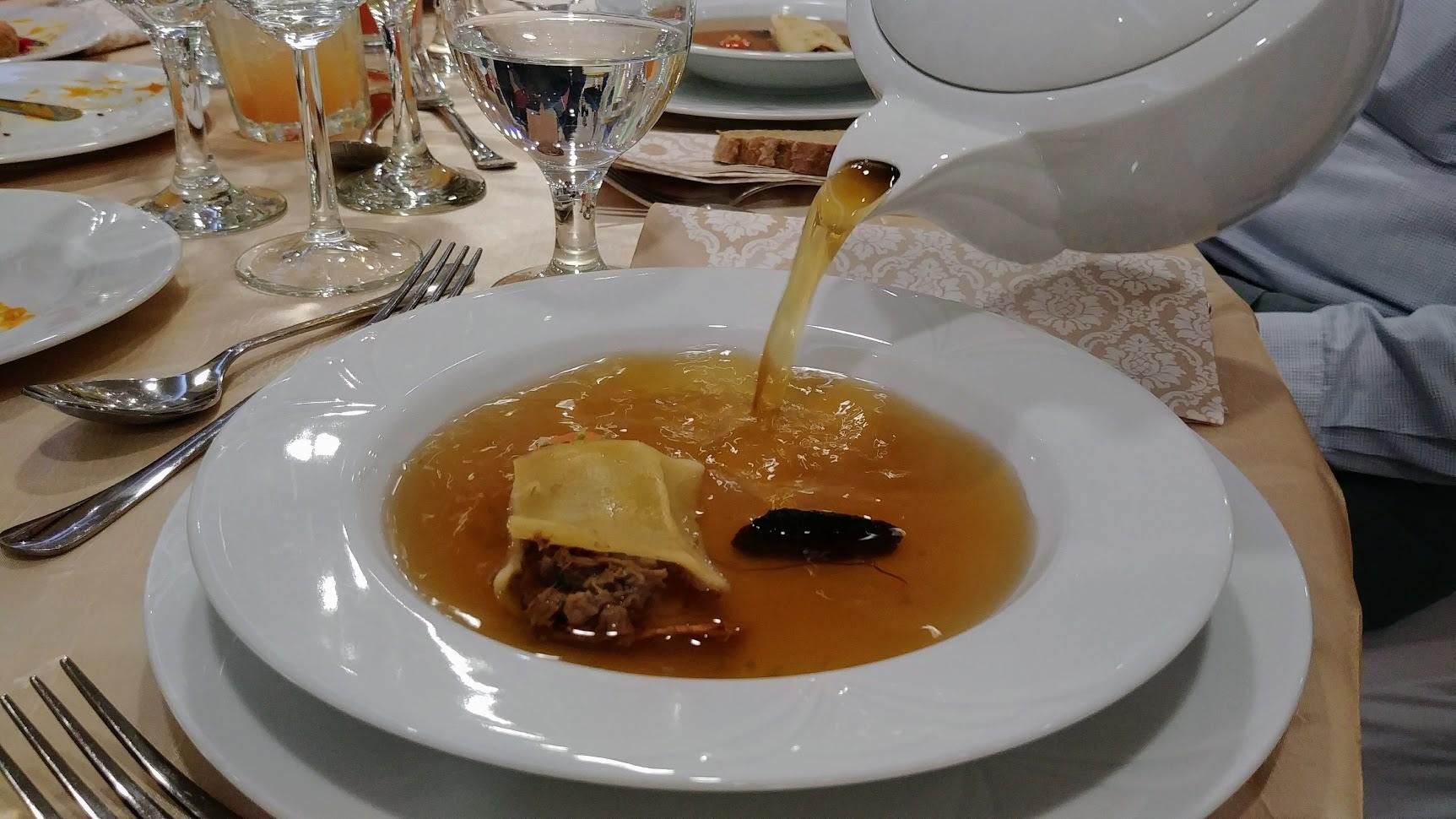 Az ételek pedig! Atyaég! Ahogy a fogas összebarátkozott a marinált kecsegével és a tányér szélén nevető zöld teás fagyival, arra nincs szó! Krúdy Gyula is csak elismerően bólogatna. Ám, azt hiszem a Czifray István-féle levestől még a regényíráshoz is megjött volna a kedve. A csapat előbányászott egy 1816-os szakácskönyvet. Ezt József nádor főszakácsa, a már említett Czifray István írta és megfőzték belőle a mennyei húslevest.