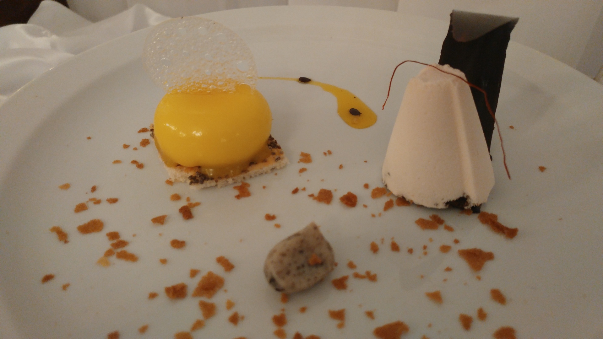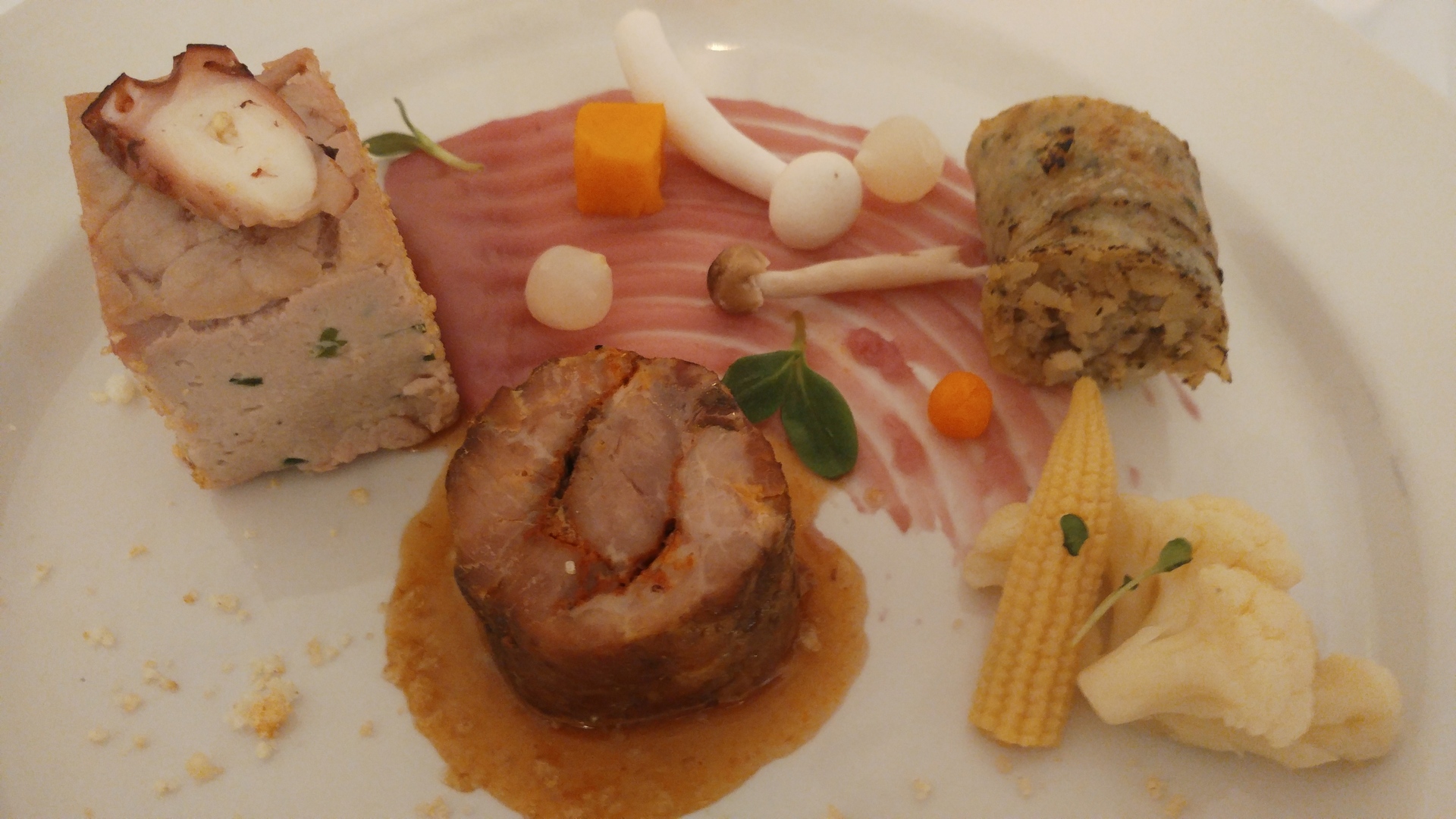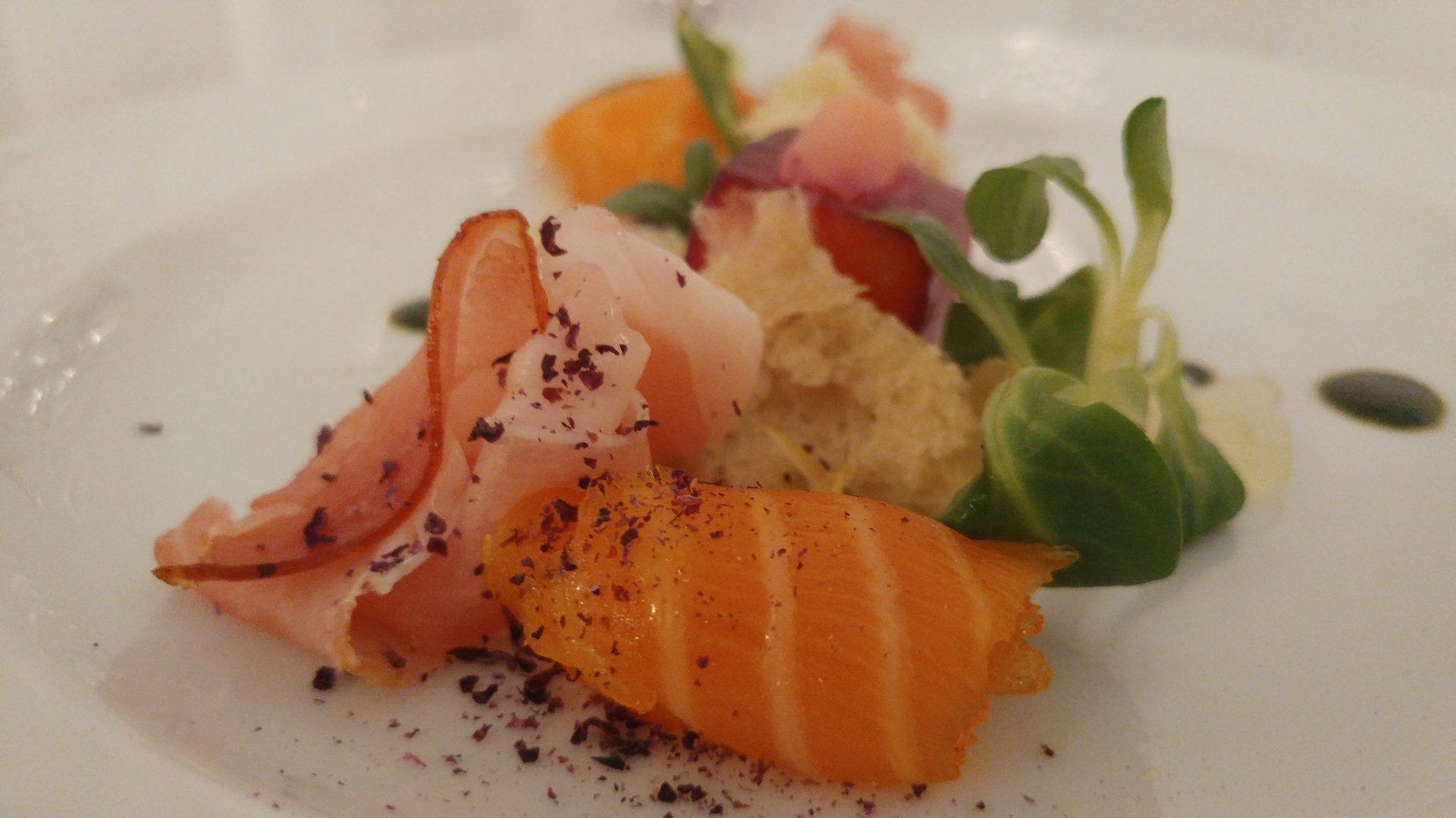 Lazac érlelt sonkával, kéksajt szivaccsal, paradicsom consomme, céklás kacsagolyóval, bazsalikom spagettivel, borjú bríz polippal, fermentált zöldségekkel, édesburgonyával, a tányérdesszerten pedig az aztékok aranya. Az előétellel együtt 6 izgalmas fogást kóstolhattak meg a vendégek. A menüsort többek között az erfurti szakács olimpián nagy sikert aratott 5 fős csapat találta ki. Szoboszlai Gyula azt mondta, ezek az ételek a legújabb trendet képviselik.
